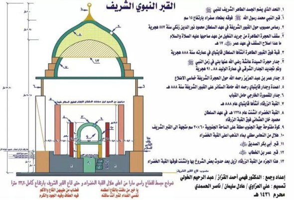 *Reporter Omar al-Midwahy menyebutkan bahwa penutup ruangan makam Nabi tidak seperti penutup Ka’bah yang saban tahun harus diganti, hal ini karena penutup makam Nabi terletak di dalam ruangan tertutup dan tak pernah tersentuh oleh siapapun. Penggantian hanya dilakukan apabila diperlukan.