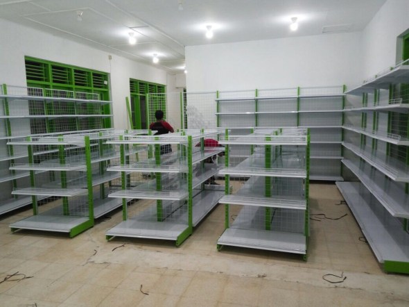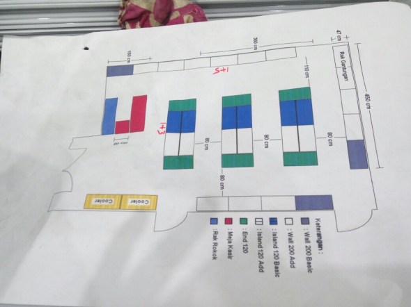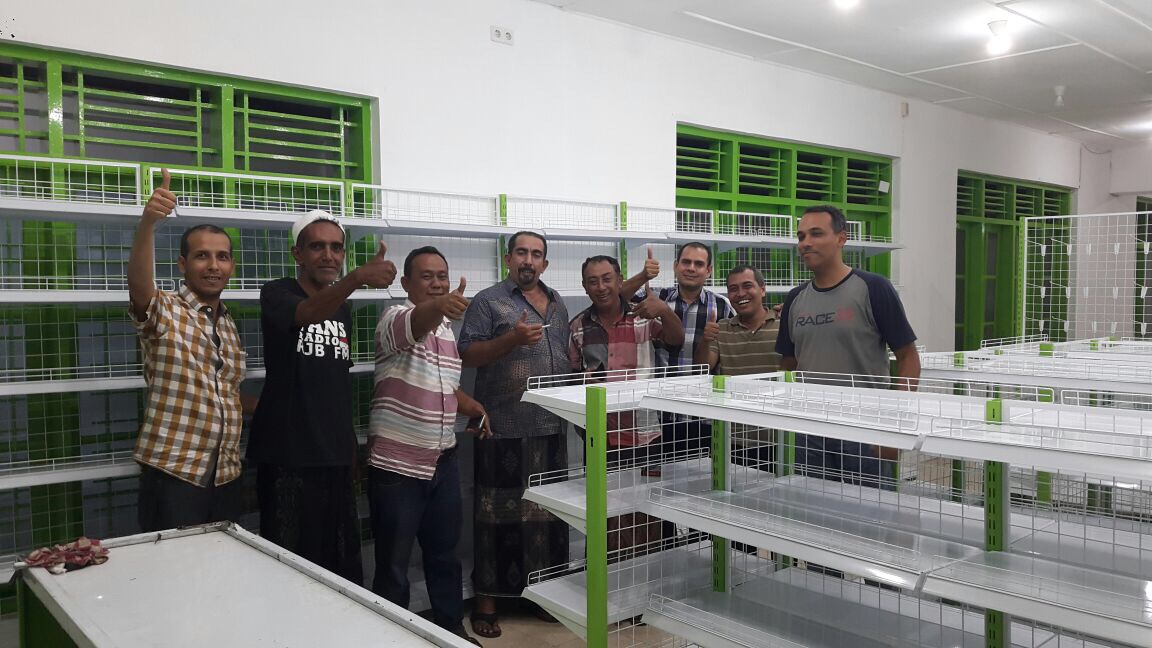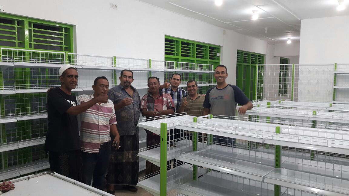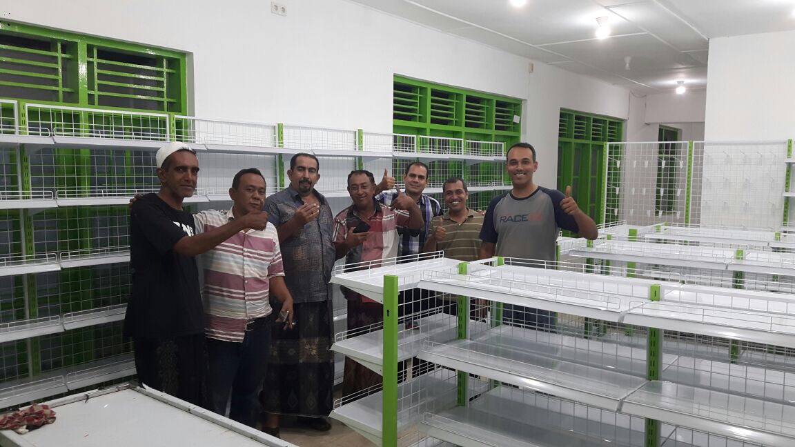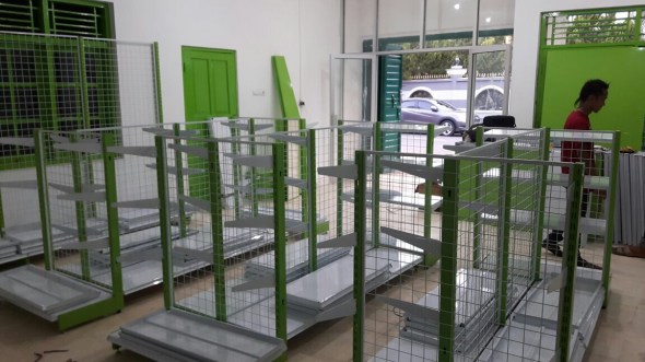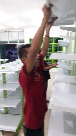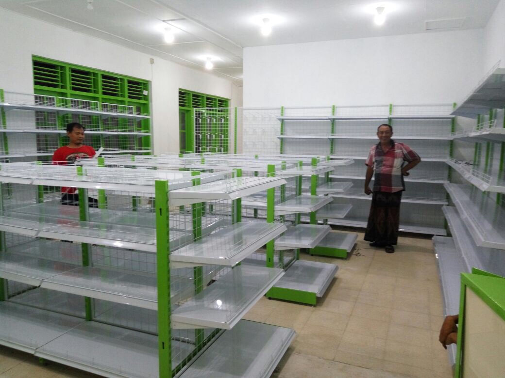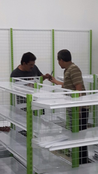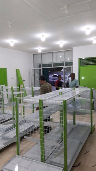 Harini 18 Januari 2017, telah datang dan dipasang satu set rak kelengkapan warung termasuk meja kasir nya.